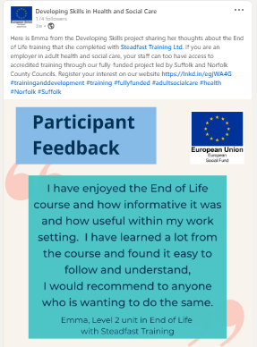 For full information on the Project, partners, course choices and funding visit: Health and social care training – Norfolk County Council.